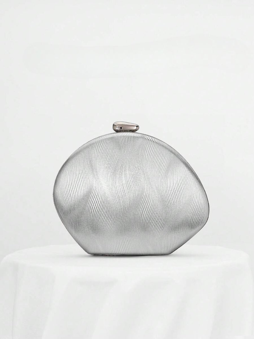Bolso metálico con textura en ondas.