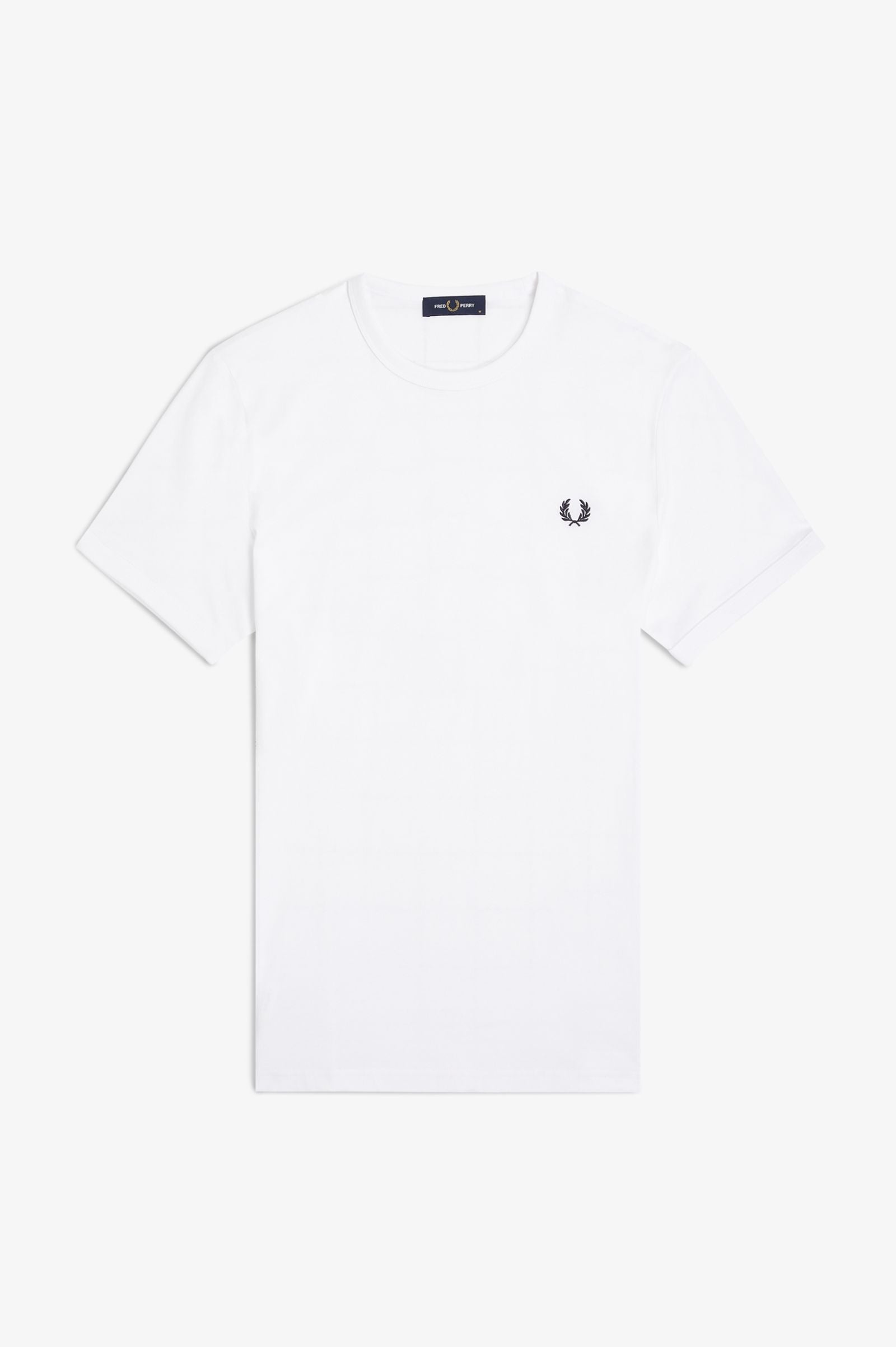 La camiseta ringer, usada en sus inicios como prenda de entrenamiento deportivo, fue adoptada posteriormente como parte integrante del uniforme subcultural. A partir de los años 70 se empezó a llevar en colores en contraste y con estampados gráficos llamativos. Nuestra versión incorpora los tonos clásicos de Fred Perry.