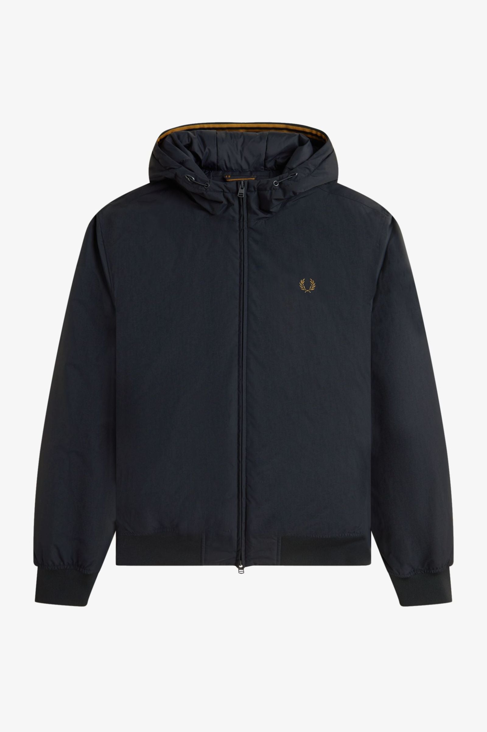 Esta variación de la chaqueta Brentham, inspirada en la ropa de abrigo tradicional británica, combina el estilo deportivo con una estética elegante. Esta chaqueta, que lleva el nombre del Brentham Tennis Club, en el oeste de Londres, lugar en el que el joven Fred pisó por primera vez las canchas, conserva los clásicos ribetes de canalé, pero, esta vez se completa con un acolchado en el cuerpo y las mangas y una capucha de forrada de malla para ofrecer mayor calidez. Los toques finales realzan el diseño e incluyen una cremallera bidireccional con el logotipo de la marca y una capucha con nuestro característico ribete con dos franjas en el borde.