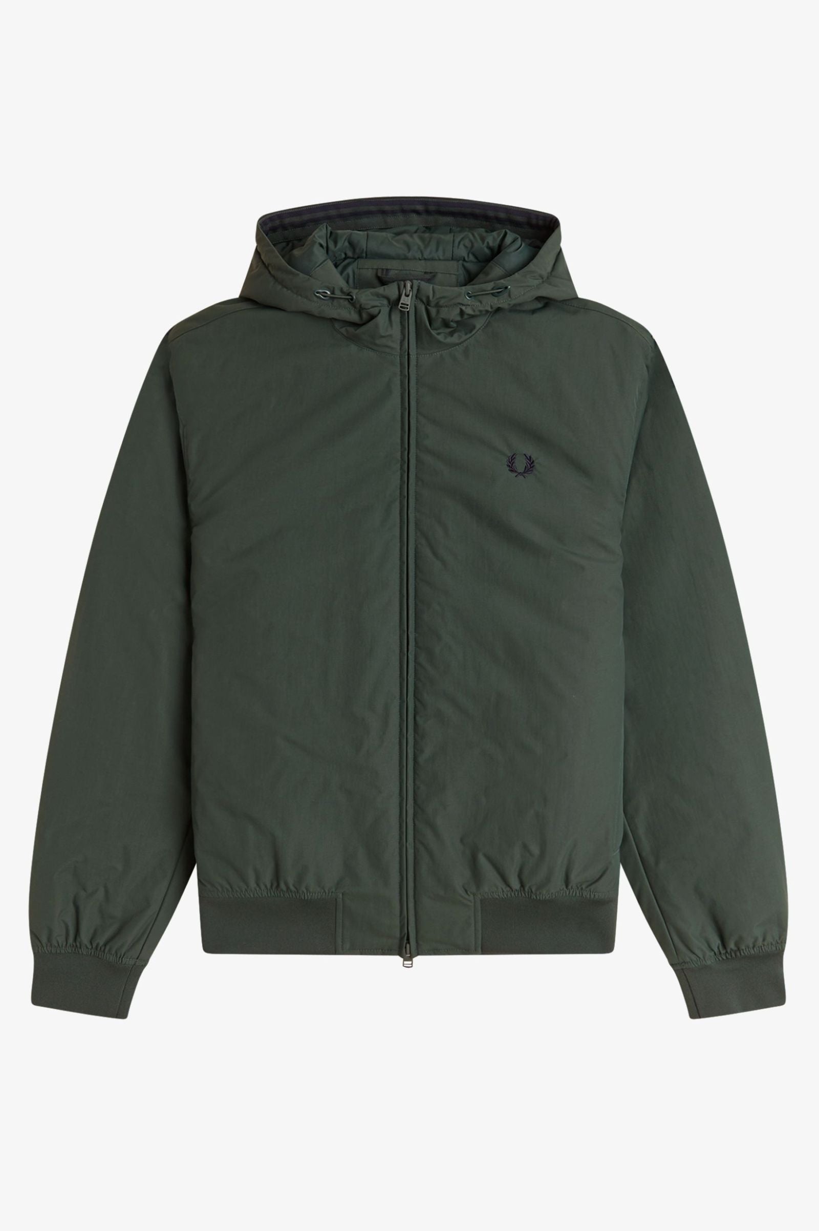 Esta variación de la chaqueta Brentham, inspirada en la ropa de abrigo tradicional británica, combina el estilo deportivo con una estética elegante. Esta chaqueta, que lleva el nombre del Brentham Tennis Club, en el oeste de Londres, lugar en el que el joven Fred pisó por primera vez las canchas, conserva los clásicos ribetes de canalé, pero, esta vez se completa con un acolchado en el cuerpo y las mangas y una capucha de forrada de malla para ofrecer mayor calidez. Los toques finales realzan el diseño e incluyen una cremallera bidireccional con el logotipo de la marca y una capucha con nuestro característico ribete con dos franjas en el borde.
