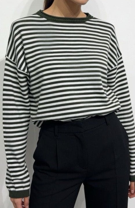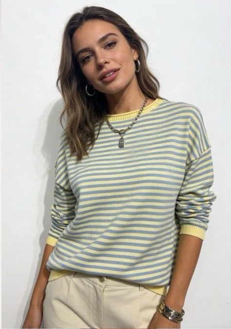 - Cuello redondo y puños en contrastes.