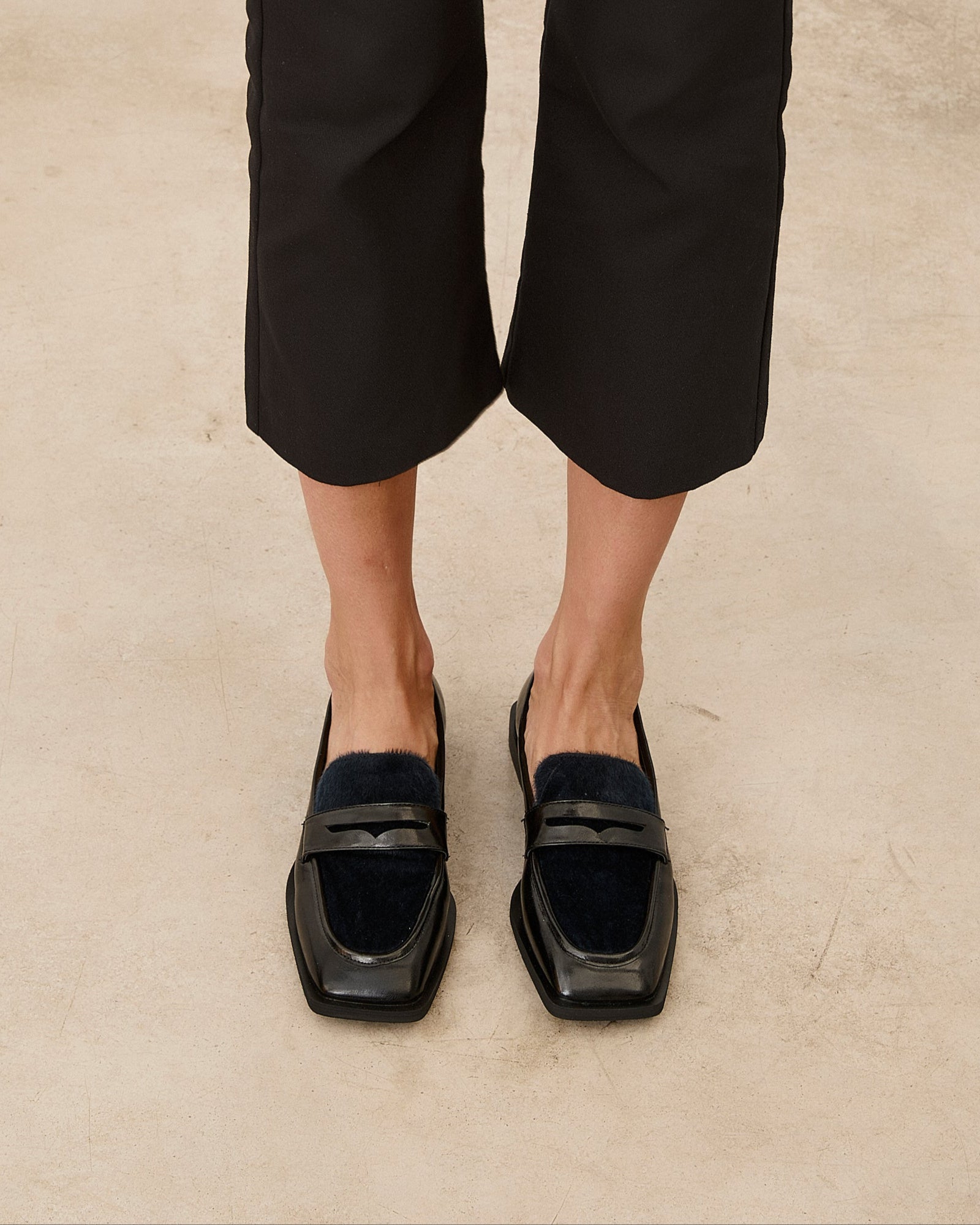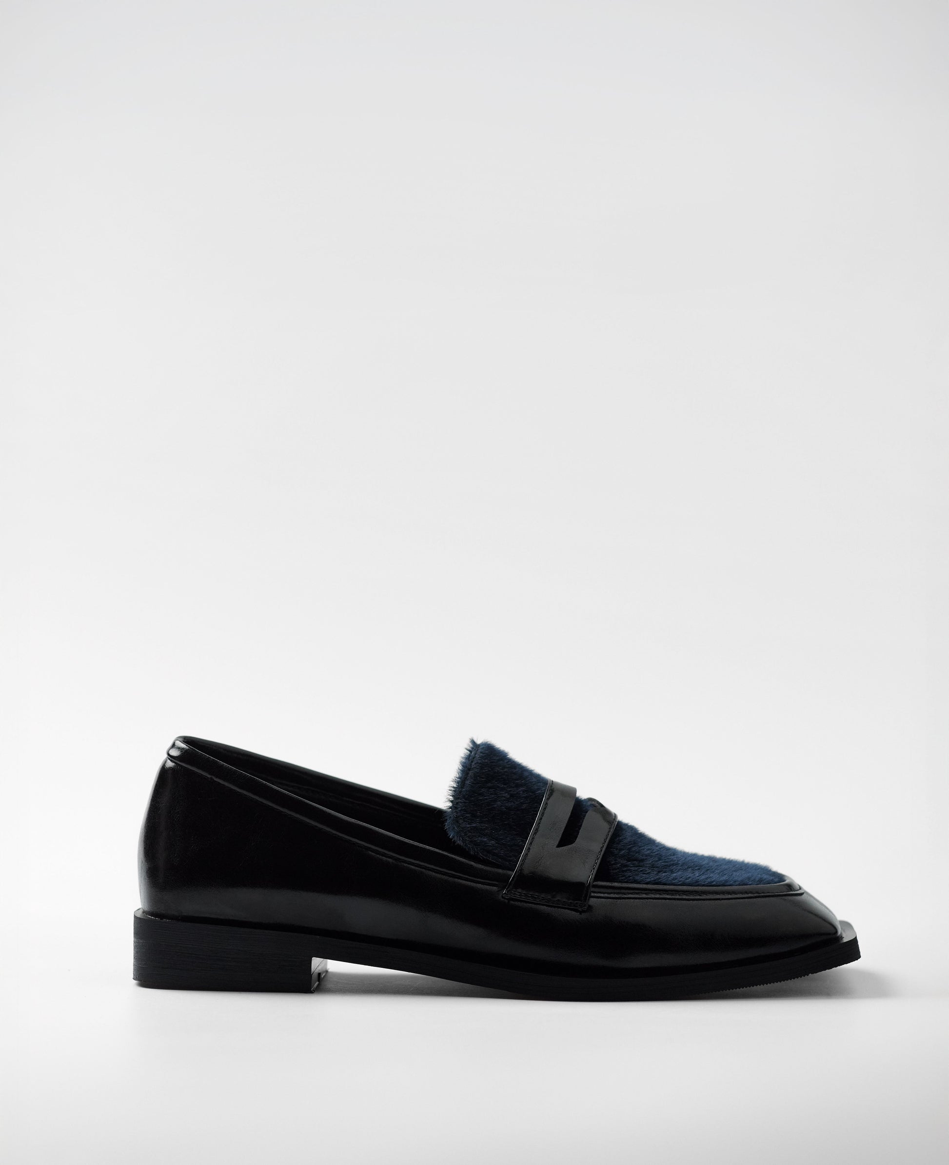 - Zapato cerrado estilo mocasín en color negro.