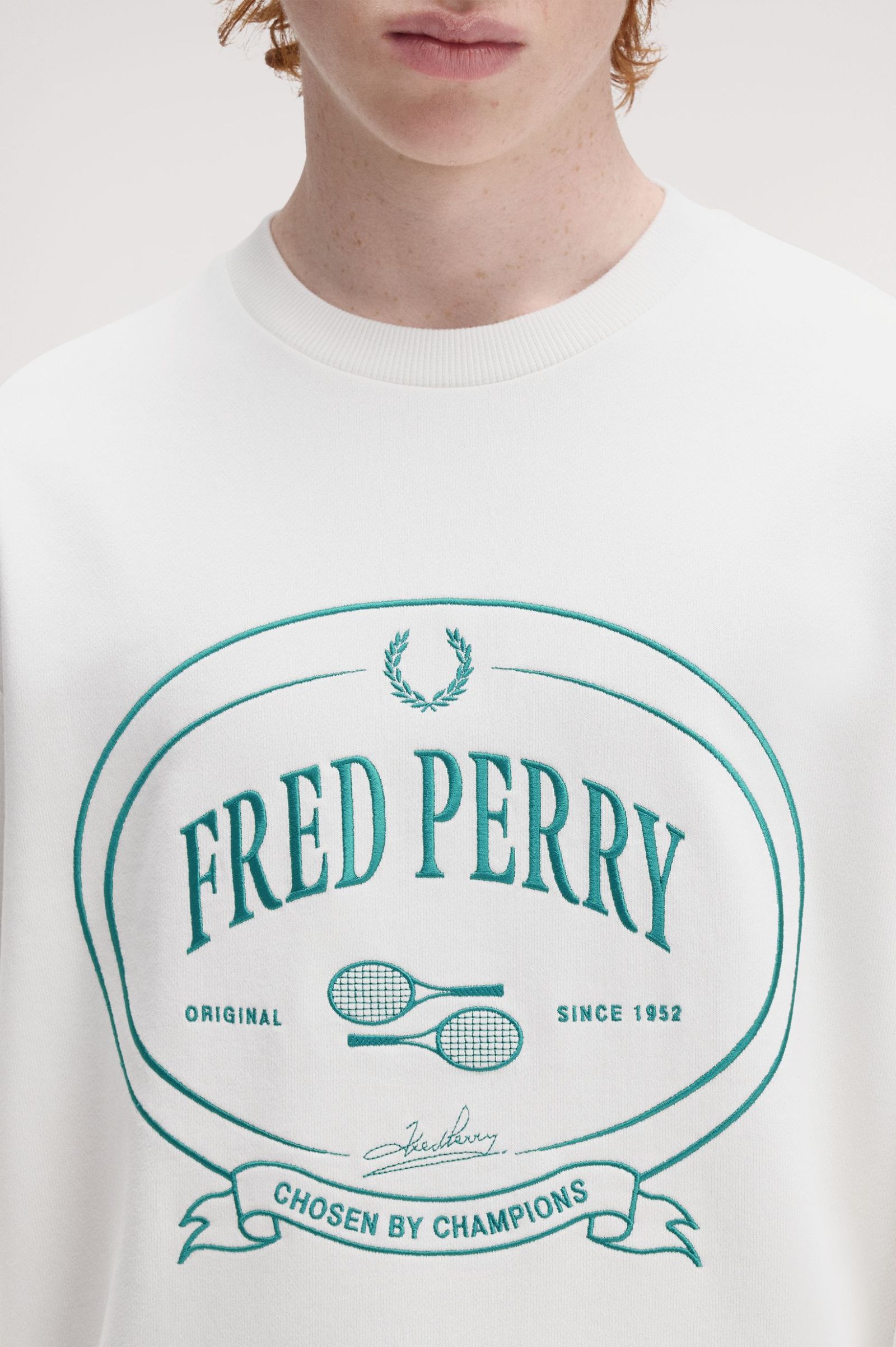 - Detalle de la marca Fred Perry bordado en el centro del pecho
